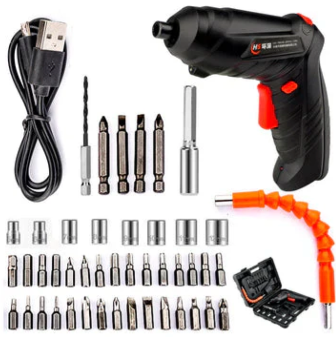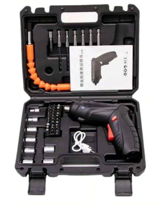 ¡La Herramienta que necesitabas! Características Principales: • Diseño Flexible: Llega a los rincones más inaccesibles. 🔄• Inalámbrico: Libertad de movimiento sin cables. 🚀• Multifuncional: Taladra, atornilla y desatornilla fácilmente. ⚙️• Ergonómico: Uso cómodo durante largos periodos. 🛠️ Beneficios: • Velocidad Variable: Adaptable a tus necesidades. 💨• Compacto y Ligero: Fácil de transportar y manejar. 👜• Accesorios Incluidos: Todo en un solo paquete. 🎁 Incluye: • 2 brocas de madera (2.5 y 3 mm)• Llaves de vaso de 5 a 12 mm• 7 puntas planas• 7 puntas de estrella (Philips)• 7 puntas Allen• 7 llaves Torx• 3 puntas cuadradas• 2 puntas largas de estrella (Philips)• 2 puntas largas planas• 1 cargador USB• 1 alargador flexible (DE REGALO) Ideal Para: • Proyectos Domésticos: Perfecto para cualquier tarea en casa. 🏡• Profesionales: Herramienta confiable y eficiente. 👷♂️ 🛒 ¡Añádelo al carrito y transforma tus proyectos con el Taladro Destornillador Inalámbrico Flexible! 🌟🔋